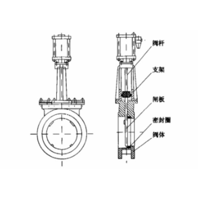 圖1 氣動(dòng)刀型閘板閥的結(jié)構(gòu)