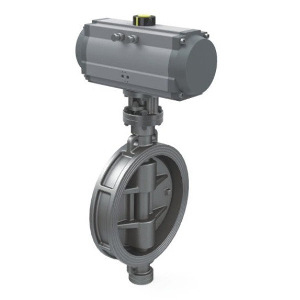 氣動(dòng)對(duì)夾式蝶閥,結(jié)構(gòu)新穎,閥體構(gòu)造為滿足管道空間狹窄而形成的短距離對(duì)夾式結(jié)構(gòu),外部零泄漏,內(nèi)部泄漏符合國家標(biāo)準(zhǔn)。