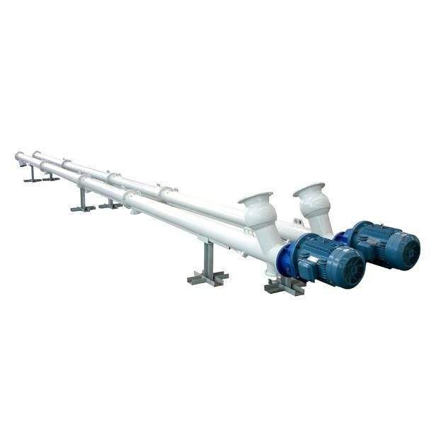 工作時物料從入口進入殼體內,電機通過減速器帶動殼體內螺旋軸旋轉,從而帶動螺旋葉片連續旋轉把物料推送到出口,可以水平輸送也可以小角度傾斜輸送;根據客戶的需求設計最優的輸送長度,最長輸送距離可達6米,輸送量最高可達到18m³/h。